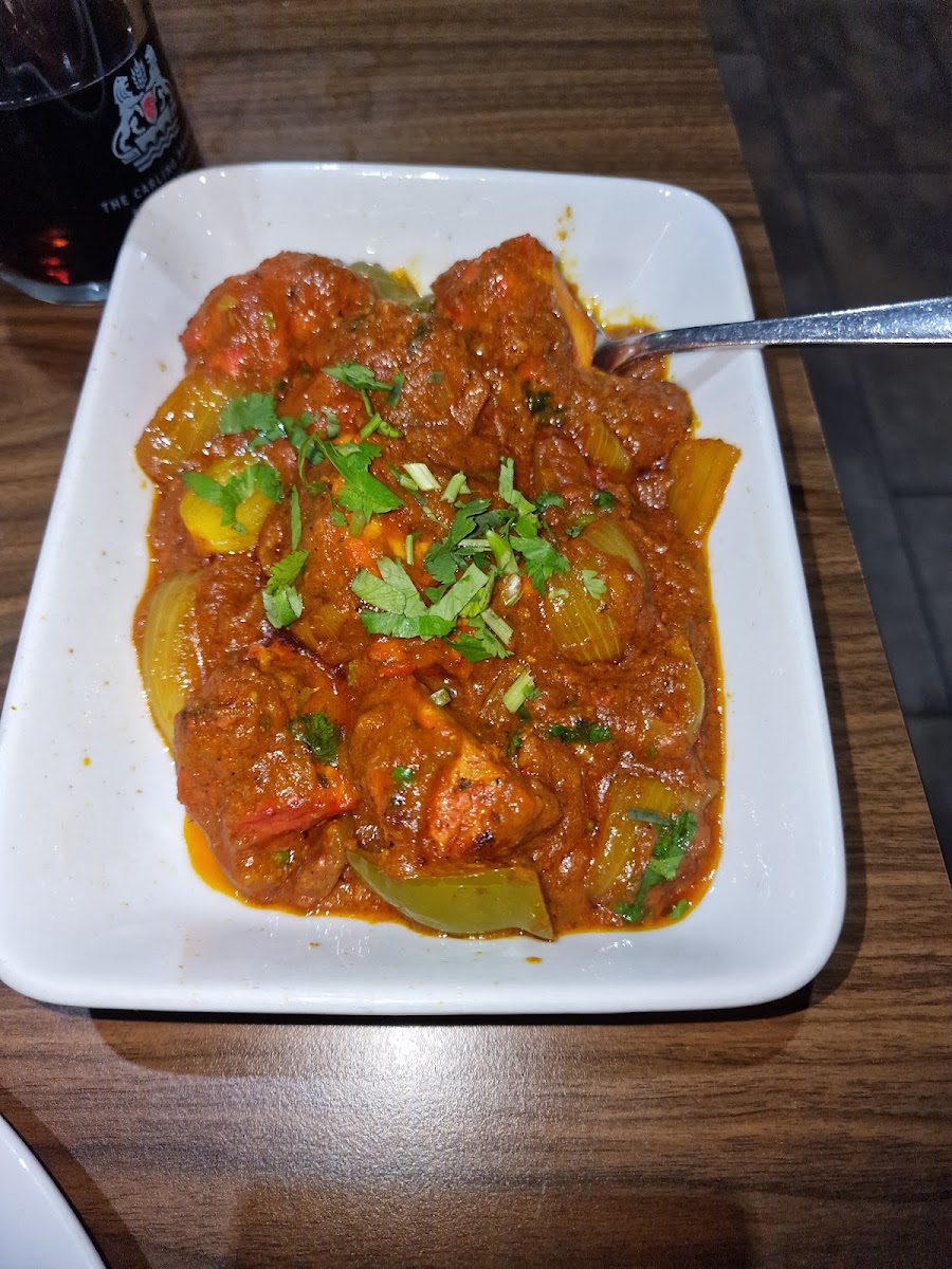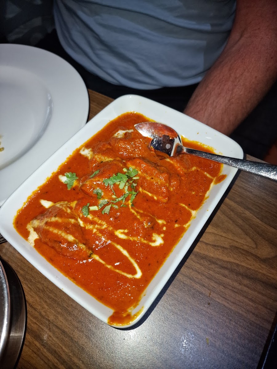Now let’s talk food-the real star here. Chicken Tikka Masala is a local favorite for a reason. Creamy, vibrant, and generously spiced without being overwhelming, it sets a high bar. The Butter Chicken follows suit, silky in texture and rich in flavor, perfect when scooped up with a warm, pillowy Family Naan that’s practically the size of a tray. If you’re looking for something with a kick, the Jalfrezi brings heat and depth with perfectly cooked peppers and onions.
